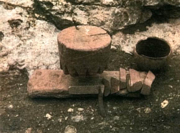 70 Çömlekçi tezgâhını oluşturan ögeler; (soldan sağa)