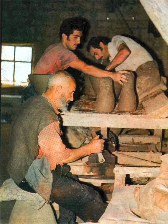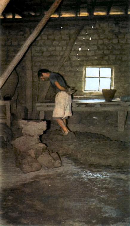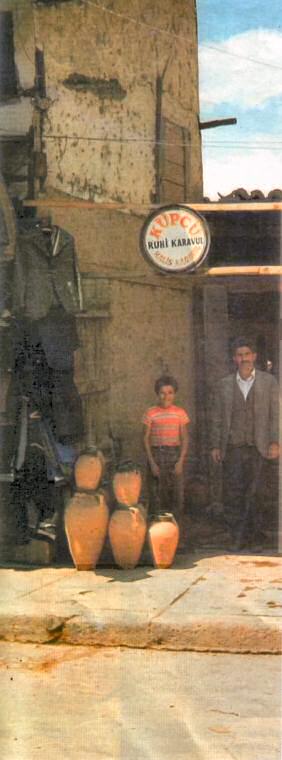Çark başında iki yardımcıyla çalışan usta, üç saatte, 50 cm. boyundaki küplerden rahatlıkla 50 tane çakarabilmektedir.